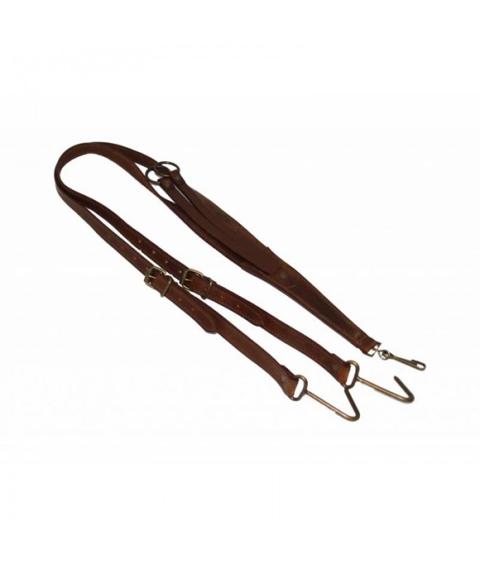 Porta Jaulas realizado en piel marron.